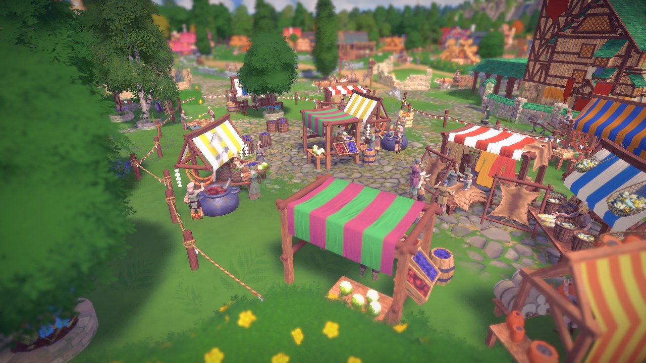 La grafica di City Tales – Medieval Era è particolare, e colpisce in primis per i suoi colori. Lo stile è tendente al cartoon piuttosto che al realistico, ma nemmeno troppo, e neanche fa troppo affidamento su un grande quantitativo di poligoni. Nonostante ciò, il colpo d’occhio lascia soddisfatti ed è anche molto rilassante. Oserei dire che riesce a restituire un senso di serenità, come guardare un bel paesaggio di campagna. Solo, molto più saturo di colori.