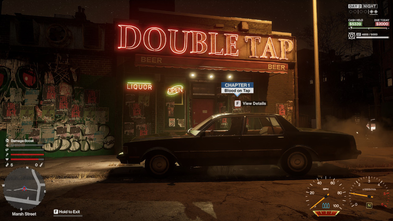 Di base sono molto permissivo con i bug, ma è giusto segnalare la loro quasi totale onnipresenza: da nemici che si rifiutano di attaccarti a collisioni improbabili in auto, ce n’è per tutti i gusti. Ma se tutto ciò per me non ha rappresentato un grande problema, il discorso cambia per la ripetitività del core loop. In appena una manciata di ore si ha la spiacevole sensazione di aver visto praticamente tutto ciò che il gioco ha da offrire. Qualunque sia il modo in cui vengono chiamate, le attività necessarie per appianare il debito sono poche e, dopo pochissimo tempo, vanificano i buoni momenti garantiti dal titolo.