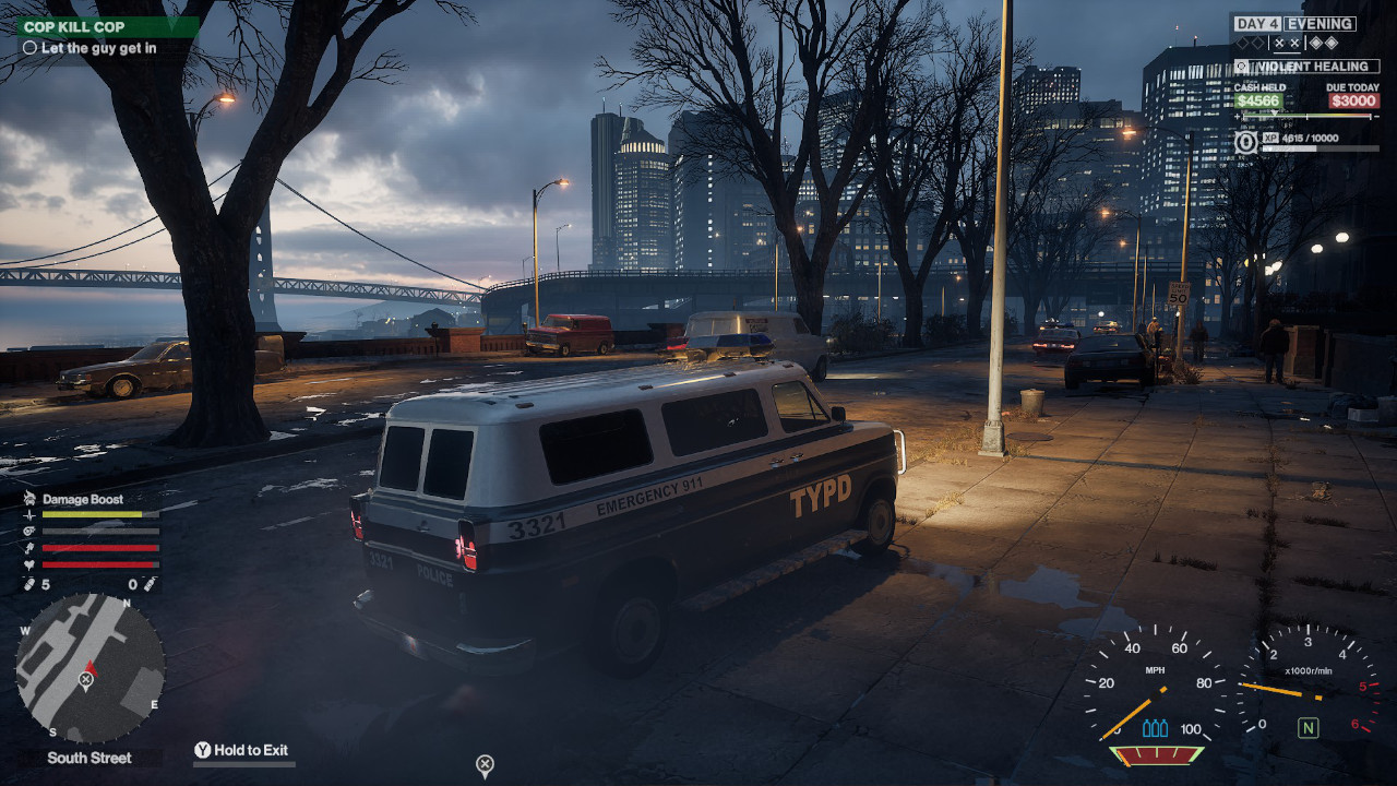 Il gioco è ambientato negli anni ’90 e per tutta la sua durata utilizzerai Samson McCray, un uomo su cui, nonostante sia appena uscito di prigione, pende un debito enorme. Sfortunatamente, Samson deve questi soldi a una banda di criminali che tiene in ostaggio la sorella Oonagh. Ovviamente il gioco introduce sin da subito altri personaggi, ma ho voluto darti giusto il minimo indispensabile per capire la trama senza toglierti il gusto della scoperta. Ho apprezzato moltissimo l’idea di base di questo enorme debito che governa l’intreccio e, di conseguenza, le fasi di gameplay. È un’idea originale che contribuisce a dipingere un quadro terribile dell’esistenza di Samson, chiaramente incapace di lasciarsi il passato criminale alle spalle. Ogni sera sarai costretto a versare una somma sul conto dei tuoi creditori e se mancherai troppi pagamenti… beh, puoi ben immaginare le ripercussioni. Quello della gestione del debito è forse l’aspetto più intrigante del gioco, anche per i riflessi sulle meccaniche: le varie missioni giornaliere pagano in base alla difficoltà e starà a te decidere quanto rischiare. Il fallimento fa parte del gioco, ha delle conseguenze e tiene il giocatore sempre col fiato sospeso.